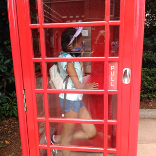 Our first stop was Canada where we got rained on, appropriate I know. Luckily I remembered my poncho so I didn't get soaked through. But after it stopped I had to tie it to my backpack until it dried and I could roll it up into my backpack again. After making a few very important calls, I went into the tea shop where I found some Lady Grey tea. I purchased it for my little sister, we always drink tea on Period Drama Saturday so I think this might be something she'll enjoy. In our way out we noticed Alice in the garden and got a picture!